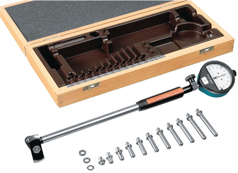 Selbstzentrierendes Zweipunkt-Vergleichmessgerät geeignet für das präzise Messen von Innendurchmessern und Formabweichungen. Messuhren, Feinzeiger oder andere Messwertaufnehmer mit Schaft-Ø 8 mm können verwendet werden. Die festen, auswechselbaren Messbolzen erlauben die Einstellung auf unterschiedliche Durchmesser.