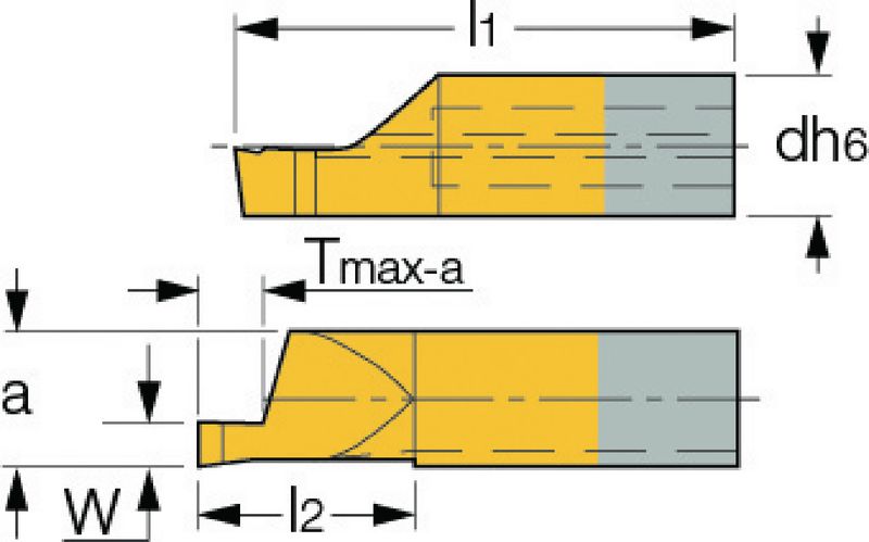 Typ 010, rechts, Axialeinstiche, Hartmetall mit TiN-Beschichtung, Zylinderschaft mit Spannfläche,