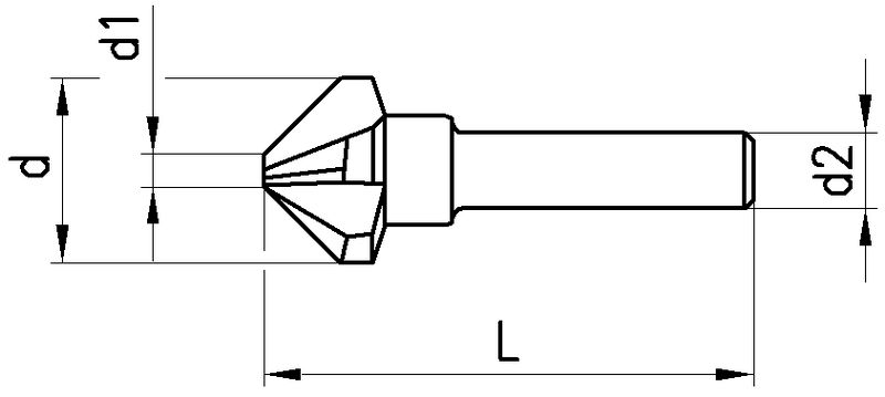 Mehrschneider, Werksnorm, HSS-E Co8, Zylindrisch (ohne Fläche, HA), ab 8 mm mit Dreiflächenanschliff, Senkwinkel 90°