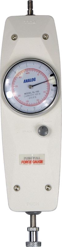 SL - Zug und Druck - Einfaches, analoges Handmessgerät zur Messung von Zug- und Druckkräften. Das Gerät hat eine speziell ergonomische Form, sodass es gut in der Hand liegt. Das Gerät funktioniert rein mechanisch und benötigt keine Stromversorgung.