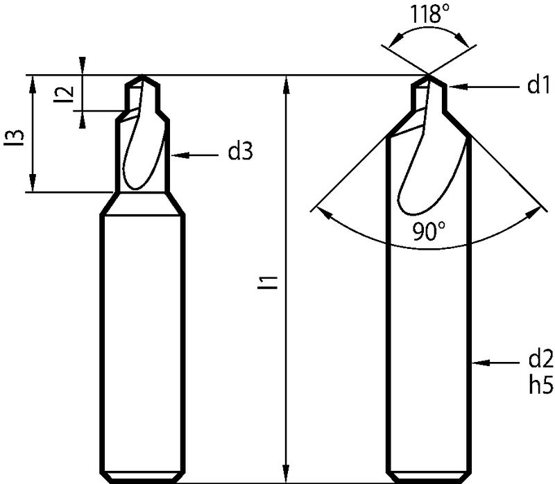 VHM, Ø 0.1-1 mm, Spitzenwinkel 118°, Senkwinkel 90°, Zylindrisch (ohne Fläche, HA), Werksnorm, Bohrtiefe 1xD