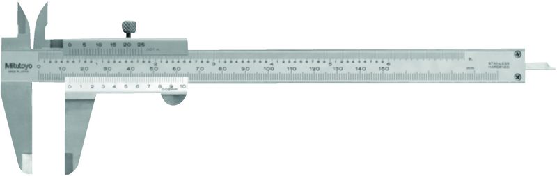 Schiene und Schieber aus gehärtetem, nichtrostendem Stahl. Massstab und Nonius mattverchromt.