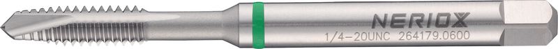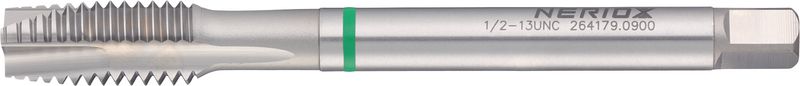 gerade Nuten, Schälanschnitt, HSS-E, UNC-Gewinde, Rechtsgewinde, Toleranzfeld 2B, Anschnittform B (3.5-5.5 x P), Zylinderschaft mit Vierkant, Anzahl Zähne 3 Leistungsklasse Universell für alle Materialgruppen geeignet. Anschnittlänge 3.5 x P Lochart: Durchgangsloch < 3 x d. Ausführungen: UNC 4-40...UNC 3/8-16: UNI, Schaft verstärkt, DIN 371 UNC 1/2-13: UNI, Schaft durchfallend, DIN 376
