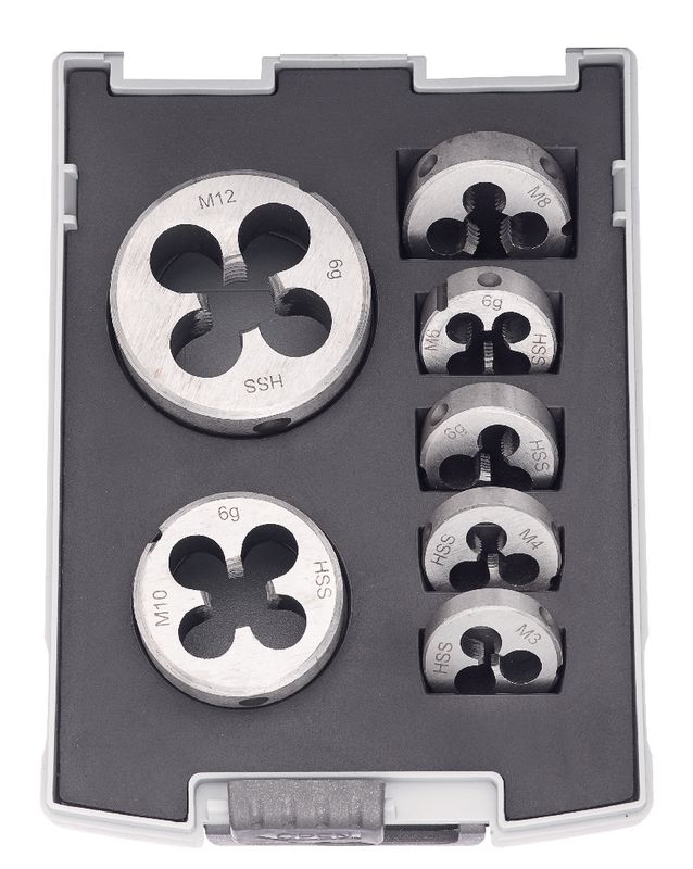 Schneideisen-Satz HSS, 7-teilig (M3−M12) in Kassette.