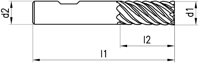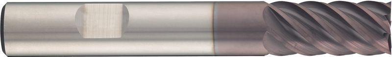 Typ N, VHM, Ø 6-16 mm, TiAlN-Beschichtung, Drallwinkel 45°, Spanwinkel 12°, Weldon (mit Fläche, HB), Schafttoleranz h6, lang, Zentrumschnitt, Scharfe Eckenausführung, Anzahl Zähne 6, Werksnorm