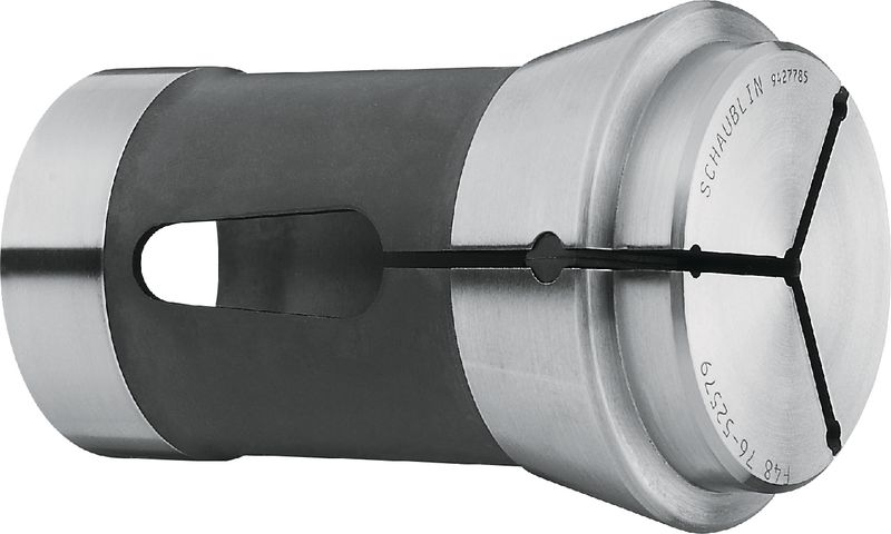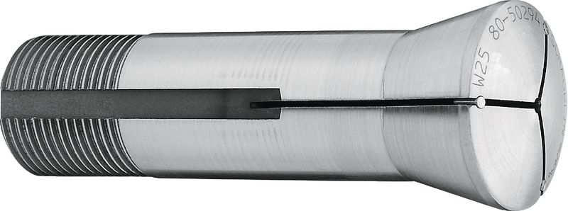 Mit gehärtetem Schaft und weichem Kopfteil, vorgeschlitzt und vorgebohrt. Anwendung Notfallspannzange mit den drei Stiften in den Schlitzen normal einspannen, die benötigte Bohrung durch Bohren, Drehen oder Schleifen erstellen. Nach Reinigung und Entfernung der drei Stifte ist die Notfallspannzange einsatzbereit.