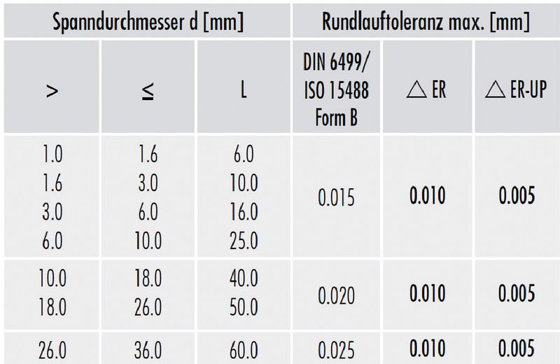 Typ ER-UP (Ultra-Präzise)Anwendung: Vorwiegend in der Hochgeschwindigkeitsbearbeitung, bei der sehr hohe Rundlaufgenauigkeiten benötigt werden. Gleichzeitig wird die Werkzeugstandzeit erhöht.
