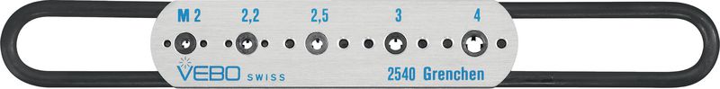 Die Schneideisen sind auf einer verschiebbaren Platte montiert, jedes Schneideisen kann in eine zentrale Lage geschoben werden.