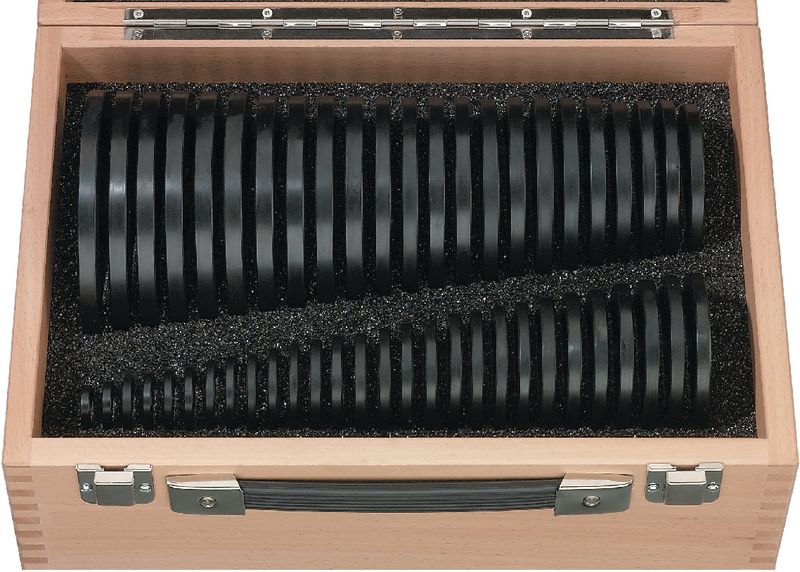 Inhalt: 51 RingeZum Ausdrehen von weichen Backen. Einfachste Spannung zwischen den Backen, in Holzetui.