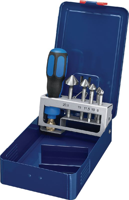 in Metallkassette, HSS, Zylindrisch (ohne Fläche, HA), Senkwinkel 90°, Anzahl Zähne 3