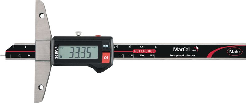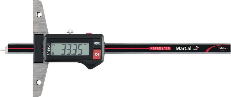 Universeller Tiefenmessschieber mit geläppten Führungsbahnen. Schieber und Schiene aus rostfreiem, gehärtetem Stahl. Gut ablesbare, kontraststarke LCD-Anzeige. REFERENCE-System mit LOCK-Funktion.