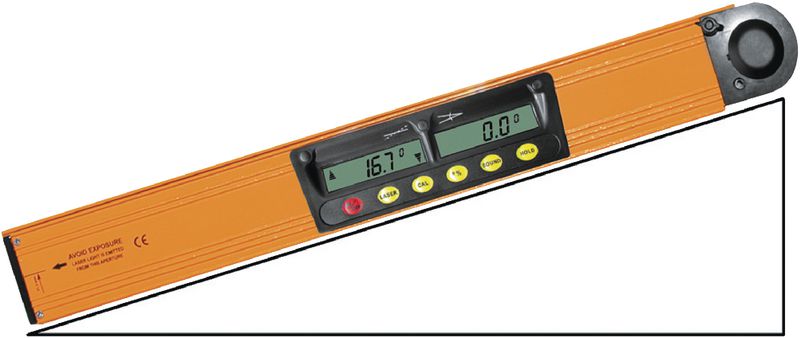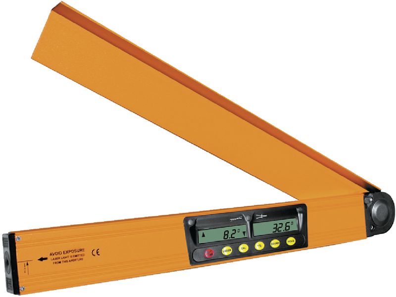 Winkelmesser, Neigungsmesser und digitale Laser-Wasserwaage in einem Gerät.